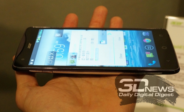 Также в рамках презентации был представлен “смартфон-переросток” Acer Liquid S1. Новинка получила 5,7-дюймовый дисплей с разрешением 1280х720 точек, 4-ядерный процессор Mediatek с частотой 1,5 ГГц, 1 Гбайт оперативной памяти, 8 Гбайт флеш-памяти, есть и слот для карт памяти microSD объемом до 32 Гбайт.