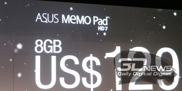 Но зато купить Memo Pad HD7 в США можно будет всего за $129 — столько будет стоить версия с 8 Гбайт флеш-памяти. За 20 дополнительных долларов можно будет приобрести вариант с 16 Гбайт. В общем, эра сверхдешевых планшетов, похоже, все ближе, и скоро на рынке наверняка дебютирует устройство от известного производителя с ценой ниже психологической отметки в $100.