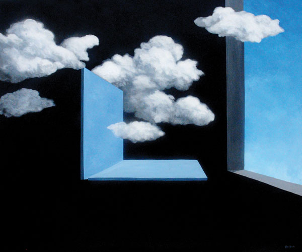 Еще одна картина, процитированная практически дословно – «Гроза» Магритта. Это далеко не самое известное из его произведений, но оно идеально подошло для целей экспозиции Toshiba.