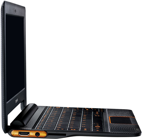 Ноутбук чрезвычайно органично вписался в картину: центральный объект этого произведения – секущая линия – крайне удачно использован в качестве грани между корпусом и крышкой портативного компьютера.