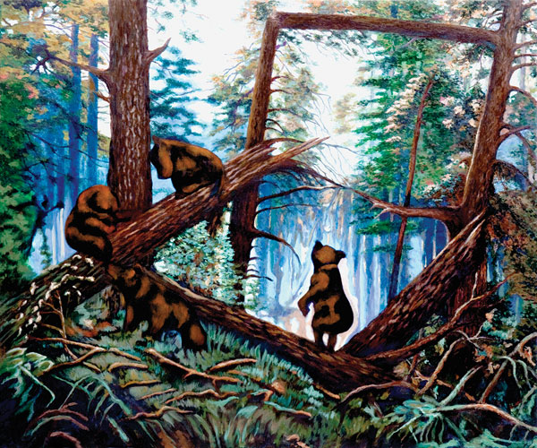 Но она, к сожалению, была. К сожалению – потому что оба представленных произведения получились не особенно удачными. Вот, к примеру, тошибовская версия самого известного полотна Шишкина.