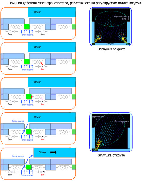Что любопытно, это не единственный вариант MEMS-транспортера. Например, в Токийском университете для реализации схожего функционала использовали совсем другой метод: перемещение микрообъектов с помощью регулируемого потока воздуха. Дополнительное преимущество такого подхода состоит в том, что он бесконтактный – что позволяет свести к минимуму вероятность повреждения поверхности перемещаемого объекта.