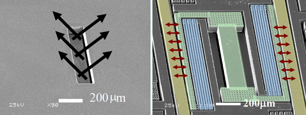 Рабочая часть электростатического актуатора. Работает так же, как акселерометр, только ровно наоборот – в MEMS очень много устройств, принципы работы которых зеркальны