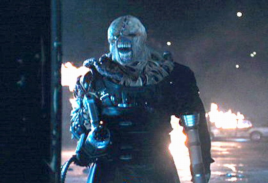 Основные герои Resident Evil 2 - Леон Скотт Кеннеди и Клэр Редфилд. Клэр ищет своего брата Криса Редфилда, одного из главных участников событий первой части. В кадре также появляется дочь Уильяма Биркина Шерри с медальоном на шее, где хранится образец G-вируса. В Resident Evil 3, вышедший в 1999 году, авторы добавили возможность отталкивать зомби, мгновенно поворачиваться на 180 градусов, создавать патроны из пороха и суперпатроны. Именно в этой части появляется монстр Немезида - главный "босс", который представляет собой усовершенствованную версию Тирана из Resident Evil. В отличие от твари, показанной в кино, игровая Немезида размахивает щупальцами, которыми пробивает черепа. По ходу игры монстр мутирует, в итоге превращаясь в громадное ползающее существо, плюющееся кислотой. ![]() Немезис из Resident Evil 3.