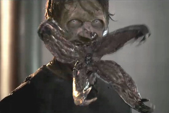 Судя по кадрам ролика, некоторые существа из Resident Evil: Afterlife уже так или иначе знакомы зрителям. Например, монстр с четырьмя щупальцами вместо рта напоминает Кровососа из игровой вселенной S.T.A.L.K.E.R, а чудище с "палицей" - Пирамидоголового из Silent Hill. Наконец, лихая резня с использованием мечей кому-то может навеять воспоминания о схожих сценах из фильма-антиутопии Equilibrium. ![]() Новый монстр (Resident Evil: Afterlife).