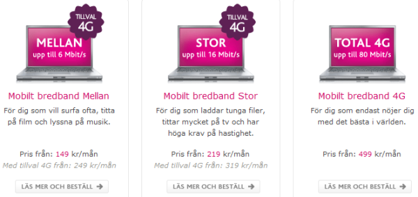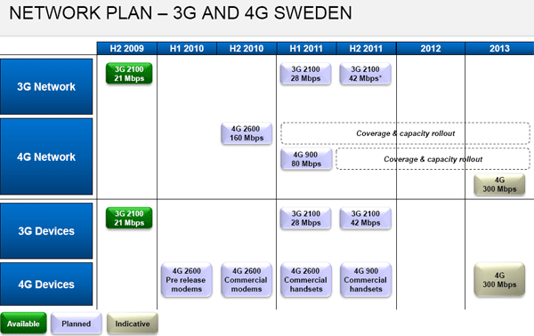 На момент проведения презентации было установлено уже более ста базовых станций, кроме того, каждую неделю будет вводиться в эксплуатации по 30-50 БС до конца нынешнего года. Сеть является комбинированной — также поддерживается работа в стандарте GSM. В течение этого года LTE-сеть будет доступна в центральных частях Стокольма, Готенбурга, Мальмё и Лунда. Для абонентов будет доступен хэндовер 3G-4G и 4G-3G, так что пользователи не заметят "ни единого разрыва".