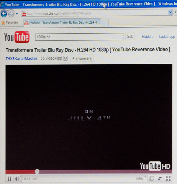 Трейлер фильма Transformers-3 с разрешением Full HD загрузился весьма быстро.