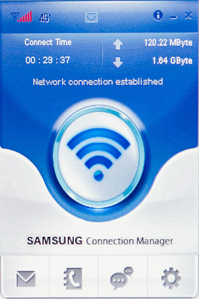 Вот так, к слову, выглядит интерфейс программного обеспечения модема Samsung.