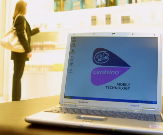 Выход из сложившейся ситуации многие ученые-технологи и аналитики видят в беспроводном доступе в сеть. Одно из наиболее удачных решений на сегодняшний день предложила компания Intel, став движущей силой в предоставлении широкополосного доступа в интернет с помощью разработанной "с нуля" технологии Centrino для мобильных ПК. Если отбросить мудреные технические термины, то суть технологии можно объяснить следующим образом: по всему миру, в самых популярных местах скопления людей открываются точки беспроводного доступа; пользователь, находясь вблизи этих точек, имеет возможность входить в мировую паутину через свой ноутбук на скорости 1-11Мб/с. А теперь детали: