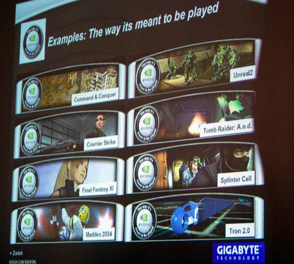 Такова была ситуация еще вчера. А сегодня в Москве состоялась первая в Европе презентация совместного продукта nVidia/Gigabyte - материнской платы Gigabyte 7NNXP на чипсете nVidia nForce II 400 Ultra. В течении этой недели презентация пройдет еще по трем странам Европы - в Великобритании, Бельгии и Германии. Обозреватели этих стран, в свою очередь, будут иметь потрясающую возможность всласть посоревноваться в формулировках "политических" вопросов представителям nVidia и Gigabyte...:-)