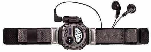 Наручные часы Casio Wrist Audio Player удивляют не тем, что они совмещены с МР3-плеером, а встроенной картой памяти ММС объемом 32 Мб. На ней и предполагается хранить музыкальные треки в формате МР3. Музыки на такую карточку влезет совсем немного: примерно 33 минуты высокого качества, 44 минуты среднего качества и 66 минут — низкого. Размер часов составляет 54х49х19 мм, масса — 70 грамм. Литий-ионный аккумулятор можно подзаряжать, однако все это вряд ли стоит запрашиваемых денег ($376 с учетом пересылки).
