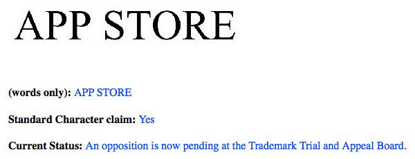 Заявку на регистрацию словосочетания «App Store» Apple подала еще в июле 2008 года. В заявке указано, что термин «App Store» служит для описания «сервиса розничной торговли программным обеспечением, поставляемым через Интернет, а также другие компьютерные и электронные коммуникационные сети» и «сервиса розничной торговли программным обеспечением, используемым в переносных мобильных цифровых электронных устройствах и другой бытовой электронике». Microsoft такая формулировка не устроила, и компания обратилась в Бюро по регистрации патентов и торговых марок (USPTO) с просьбой отказать Apple в регистрации торговой марки. По мнению Microsoft, данный термин является универсальным и поэтому не может быть запатентован.