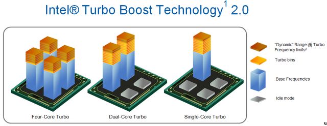 Роста производительности удалось добиться в том числе и за счет улучшения технологии Turbo Boost – если раньше автоматически поднималась частота только одного ядра процессора, то теперь возможно увеличение тактовой частоты не только четырех вычислительных ядер, но и графики, если это позволяют температурные ограничения.