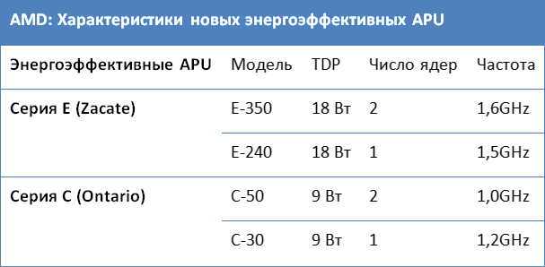 - AMD C (Ontario) — для нетбуков и других развивающихся форматов вроде планшетных ПК.