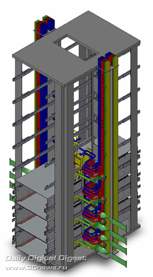 Как можно заметить, blade-модули собираются в шасси чрезвычайно плотно, расстояния между ними практически не остается. И каждый из них потребляет и выделяет весьма впечатляющие 270 Вт. Как же удается охлаждать суперкомпьютер? Это еще одна примечательная особенность проекта: в СКИФ Аврора используется водяное охлаждение.