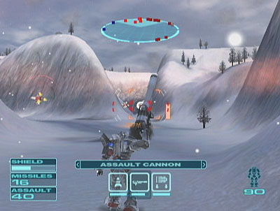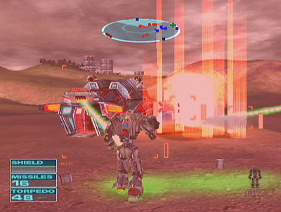 Что важно не только для того, чтобы перемещаться между очагами битвы, но и для того, чтобы при необходимости смотаться до "ре-энерджайзера" - наземной структуры, которая ремонтирует в непосредственной близости от себя "внутреннюю структуру", рядом же обычно можно и подзаправиться боеприпасами, которые по большей части закончились. Энерджайзеров на карте вовсе не много, обычно один - и враги часто стремятся уничтожить его. Каждая из форм несет по четыре вида оружия одновременно, плюс дополнительное - несколько пачек самонаводящихся (даже не "fire-and-forget" а "just fire") ракет. Основное оружие очень разнообразно - начинается все с простых "пистолетов" с неограниченным боезарядом, потом постепенно слоты заполняются новинками, причем как робот получает оружие "земля-воздух", так и самолет - "воздух-земля". Что очень приятно - практически каждая новая миссия приносит вам один-два вида нового оружия (в слотах появляется возможность выбора, а у игрока, соответственно, возможность "предбоевого тюнинга" своего меха), причем оружие очень хорошо придумано и обладает ярко выраженным "удовольствием от применения", как визуальным, так и психологическим. Имеется, кстати, автоприцеливание.