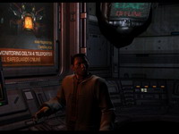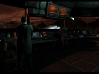 Сразу же по прибытии вы погружаетесь в очень интерактивный мир, производящий редкостно целостное впечатление живого, даже если не касаться пока предстоящего вопроса графики. Где-то над вами ворочается здоровая туша шаттла, работающий рядом техник дружелюбно указывает вам направление к ресепшену, встречающий вас ресепшионист направляет вас к командующему - все говорят с вами, как это всегда будет в игре очень осмысленно, и даже если вы будете надоедать им продолжением разговора снова и снова - будут упорно стараться избегать "повторения общих фраз". Более того - когда вы проходите мимо кого-то, он будет занят своими собственными делами, может вести с кем-то еще очень разумный диалог, который можно послушать. А если вы прервете этого кого-то своим вопросом - он очень естественно прервется и побеседует с вами со всеми полагающимися живому человеку в таких случаях жестами - причем все это не ролик, а синтез реального времени. Потом вы поговорите с командиром, боевой робот-паучок проводит вас на ваше первое задание, с вами потолкует оружейник - и вы, в эйфории от детальности проработки игрового пространства (что-то подобное когда-то испытывали игроки в первую из крупнобюджетных, напичканных видеопоследовательностями "Wing Commander") - выйдете в первые свои "техногенные подземелья", чтобы через десять минут стать свидетелем технической катастрофы, прорыва Врат Ада и превращения мрачного техномира, который вы только что видели, в еще более мрачное технокладбище. На этом, собственно, "волшебство проработки игрового мира" и закончится - вы еще встретите, бесспорно, персонажей на своем игровом пути, и они с вами не менее качественно пообщаются, но это будут нечастые встречи в вашем боевом соло. То есть как бы есть все средства, чтобы спектакль выглядел классным, но где же актеры? И, стало быть, кто же развернет сюжет?