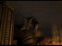 Далее - линейность уровней. Как известно, уровень реалистичности ощущений игрока очень зависит от выданной ему свободы действий. В то же время "управляемость" сюжетной линии зависит от того, насколько игрока удается направить по "проложенному маршруту". Толковые игры дают геймеру иллюзию свободы, направляя его действия исподволь. "Приемы лома", как в данном случае - и это не вина авторов, а лишь неизбегаемое следствие избранной ими схемы "интерактивного фильма ужасов" - не дают игроку даже намека на то, что он может сбиться с избранного пути: все нужные двери закрыты, с обеспечением самого минимума тупичков и эксплоринга, а нужные открыты. Идем туда сквозь анфиладу комнат, идем практически по ним же обратно - при этом ясно, что ну должны же быть в комплексе еще и другие помещения, другие проходы, в реальном мире просто должна быть возможность придти к цели разными способами. А когда вам и открывают "альтернативный проход" (не забыв предусмотрительно закрыть старый) - то совершенно очевидно, что сделано это именно из соображений "маскировки линейности", а настоящей свободы нет ни в чем. Особенно раздражает из таких вот "иллюзий" - возможность, к примеру, в какой-то момент из помещения чуть дальше по сюжету "случайно упасть" в помещение, что вы проходили чуть раньше. "Ах, как оказывается связаны эти сцены не только последовательно, но еще иногда и наперехлест, какой реализм!!!"… а потом просто повторяешь путь уже по зачищенным помещениям, просто пешочком до той самой точки, где довелось упасть - дивное развлечение, просто дивное. Причем "зачищенность" помещений тоже является иллюзией - этим не злоупотребляют, но в самый подходящий момент монстр обязательно выйдет из той двери, куда вы только что собирались отступить.