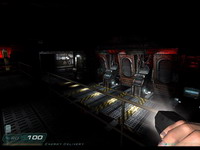 Для фильма ужасов (игры ужасов) это конечно неоценимая находка - вы или лучше видите (либо вообще хоть что-то видите), либо находитесь в состоянии обороняться (а переключение между фонарем и пушкой отнюдь не мгновенно). Добавляет кошмарности на все сто, уж поверьте (увы, авторство оригинальной находки приписать разработчикам нельзя - фонарь уже был не раз, и прекрасно, кстати, добавлял атмосферы в Silent Hill 3) - но при этом кошмарно конфликтует с общечеловеческой логикой, убивая львиную долю реализма. Нормальный человек мог бы по крайней мере взять пистолет в одну руку, а фонарик в другую… а уж если без двух рук в случае с тяжелым оружием обойтись никак, то уж примотал бы как-нибудь его к шлему. Или на худой конец к голове, раз уж шлема нет и ни у кого не ползаимстовать - жаль наверное, там ведь могла бы быть какая-нить завалященькая система ночного зрения что ли. Да и монтированные в оружие источники света в двадцать втором веке могли бы быть - учитывая, что они есть уже сейчас. Тем более в оружии, применяемом на базе, коридоры которой из непонятных соображений даже до катастрофы освещены на уровне склепов. Причем не какие-нибудь там, а такие, где идут активные исследования. Наверное, энергии жалко - все уходит на непонятного назначения крупные механизмы, каждый из которых напоминает собой электростанцию в миниатюре. А на лампочках - такая беда, сэкономили.