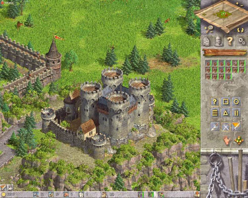 Что обязательно стоит отметить - так это графическое решение. Произвольной формы острова, рельеф на которых проявляет себя весьма незначительно - сконструированы трехмерно "из квадратиков". Сверху эти "торты" украшены немногочисленными объектами вроде "непроходимых гор", многочисленными деревьями и представителями животного мира. Смотрится в итоге на удивление неплохо. "Трехмерных тайлсетов" несколько, благодаря чему тропические острова запросто соседствуют с арктическими (устраивать там фермы и жилища лесорубов - там, ясное дело, бессмысленно). Все это великолепие можно скачками приближать или удалять (всего три вида), а также скачками поворачивать на 90 градусов. Повороты скачками выполняются оттого, что все здания в игре - заранее рисованные (при помощи 3d-синтеза конечно рисованные, ну да главное что спрайты). Это, конечно, мощно, что любое здание у нас есть с четырех сторон, а не с одной - помогает бороться с "мертвыми зонами" позади объектов, да и просто забавно. Тем более, что зданий - ну просто уйма, просто колоссальное количество, нигде столько не было. Увы, во имя такого разнообразия и многосторонности пришлось пожертвовать другим очень важным компонентом - а именно, анимацией строительства. Все же, когда здание создается "одним щелчком", это скучнее той веселой суеты, которую поднимали ваши подданные, когда получали задание на постройку в той же K&M.За исключением этой жалобы - все хорошо. "Немецкая стратегия никогда еще не выглядела так эффектно".