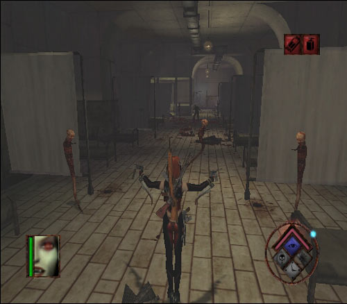 Bloodrayne - девушка-дампир, гибрид человека и вампира, со всеми плюсами обеих рас. И наконец-то, в отличие от достаточно рядовых героев других вампирских боевиков - мы имеем в своем распоряжении существо, которое по-настоящему что-то может. Например, запросто запрыгнуть на крышу дома. Или, превратившись в прыжке в подобие живой торпеды, пробить собою дверь или даже хлипкую стену. Самое эффектное, пожалуй - это проведение "питательной стелс-атаки", когда Бладрейн прыгает на противника, обвивая его руками и ногами и приникает к его телу, поглощая жизненные силы врага, который при этом корчится и кричит. Особенно отвратительно это смотрится против каких-нибудь жуткого вида мутантов - но мы, геймеры, любим омерзительные сцены. Которых, кстати, хватает и при классических боевых действиях. Ведь на каждую из рук героини надето по серебряному лезвию, а удары ближнего боя могут соединяться в смертельные связки-комбосы, существенно повышающие игровой интерес. Более того - можно еще и взять в руки оружие! Причем либо в каждую руку по пушке (прицеливание автоматическое, и можно целиться одновременно в двух врагов), либо одну двуручную (имеется три "парных" слота, и один "тяжелый"). А учитывая, что в каждую руку можно взять по пулемету, а как двуручное может использоваться "оружие, которое в обычных условиях требует стационарного монтирования" - ваш персонаж действительно может "превращаться в шагающий танк" (кстати, на одном из уровней вам действительно предстоит пилотировать большого боевого робота). В лучших традициях экшна обилие мелких противников на протяжении уровня будет разнообразиться сражениями с мощными боссами в конце.