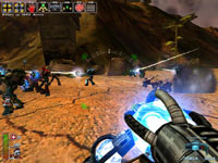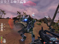 После жутковатой заставки - позднейшие впечатления заставляют предположить, что игру попросту не успели как следует доделать, и заставку в том числе - две обучающие миссии производят очень достойное впечатление (оставляя, правда, смутное ощущение, что как-то все уж очень похоже на Planetside, уж больно много совпадений). Обе миссии, к слову, проходят в некоей "виртуальной реальности" - что выражается в расчерчивании грунта на ровные квадраты и "одевания зеленых очков", причем рентгеновcких, потому что все друзья и враги предстают в виде сияющих каркасов, наподобие персонажей последней игры по мотивам "Tron" (всевозможные сияния, кстати - это как раз то, что у игры получается очень хорошо). Первая обучает дейcтвиям "на ногах", вторая - применению машин (плотно, плотно вошли они в мир шутерства). В пехотной миссии вы разбираетесь, как бегать и ходить, приседать и прыгать, даже лазать (вот это сделано ужасно, нельзя даже головы повернуть, просто перебирающие руки на экране и все). Получаете навыки применения оружия - которое сделано, надо сказать, весьма достойно - очень недурные громоздкие модели "суперпушек" которые носятся буквально "в обнимку".