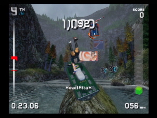 Трюкачество, зародившись где-то в дебрях симуляторов экстремальных видов спорта (сноуборд?), заразило собой и виды довольно классически-технические - вроде симуляторов мотоцикла, или, как в данном случае, аквабайка (бишь, того же мотоцикла, но в водной среде). Поскольку же с обычной ездой приколы совмещать трудно, трюки делаются обычно во время полетов гоночной машины - прыжка с обрыва, например, или с фантастического трамплина, совершенно несовместимого с земной физикой. Трюки, впрочем, тоже малосовместимы как с возможностями человеческого тела, так и с его прочностью - после дня игры телерепортажи о реальных мотоспортсменах и мотоэкстремалах смотрятся как рассказы о детских играх в песочнице.