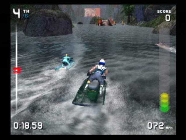 Соревнования разбиты на несколько чемпионатов - они проходят на тех же самых (их тоже немного, штук пять-шесть) трассах, только с увеличением турнира противники совершенствуются, да "волны становятся круче", в прямом смысле этого слова. Все это шикарно сделано графически - роскошно анимированные модели персонажей, очень хорошая окружающая среда, и попросту неповторимый "водный рельеф" (тоже в прямом смысле слова). Безусловно, одна из самых красивых гонок вообще. Идеальная графика + идеальный геймплей + идеальный дизайн - что еще нужно?