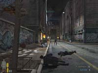 Впрочем, эта неприятная мелочь с лихвой компенсируется анимацией врагов и союзников. Motion capture в паре с фирменным slow motion (так называемым Bullet Time) обеспечивают зрелищные эффекты всевозможных падений и переворотов. Противники сползают по стенам, свисают с карнизов, катаются по наклонным поверхностям и, конечно, роняют всевозможные шкафы, полки и коробки, обрушиваясь на них всем телом. Увы, во второй части Max Payne разработчики предпочли сохранить политкорректность и не отражать отверстия от пуль в убиенных. Зато с кровью проблем нет. Места активных боевых действий изобилуют кровавыми пятнами и кровоподтеками. Да и сам Макс, побывав после очередной передряги в больнице, являет собой пугающее зрелище: зашитая бровь, окровавленный висок, запятнанная кровью рубашка. Что поделаешь, война одного против всех - дело совсем не простое.