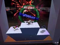 Жанр: Гоночная аркада радиоуправляемых моделей Системные требования: Celeron-266, 64 Мб ОЗУ, 3D-акселератор уровня Voodoo-II Рейтинги: Графика - 910, Звук - 810, Интересность - 1010. Примечания: В игру встроен редактор трасс. Ваяйте на здоровье!