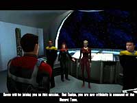 Структура игрушки здорово смахивает на "Солдата удачи". Так же как и в упомянутой игре, каждая миссия состоит из нескольких уровней. Помимо обычных заданий, напоминающих другие экшены, встречаются и вполне мирные миссии. Часть игры проходит на родном корабле, где можно познакомиться с внутренним устройством Voyager и пообщаться с его обитателями. Впрочем, и здесь вам расслабиться не дадут - то авария какая случится, то пираты нападут. Большинство заданий проходит с участием и других членов вашего отряда - вам в помощь обычно идут два человека, а остальные в это время занимаются другими делами. Приятно, что помощь ваши товарищи приносят не только во время скриптовых сценок, как любят делать во многих играх. Если на вас нападают, то и помощники в стороне стоять не будут. Стреляют они неплохо, боты все-таки, так что присутствие их сразу ощущается. Хочется отметить и отличную проработку взаимоотношений между вашими соратниками - так, Биззман будет постоянно прикалываться над всеми, особенно над доверчивым Челом, некоторые персонажи явно недолюбливают друг друга, и так далее. Причем разработчики сделали все, чтобы даже человек, в жизни не смотревший Star Treck (как ваш покорный слуга), смог без проблем разобраться во всех хитросплетениях сюжета. В игре масса скриптовых сценок, которые смотрятся просто потрясающе. Большая часть их выполнена на движке игры, но иногда встречаются и fmv-вставки. Вообще, сюжет игры сделан так, чтобы продержать вас у мониторов до самого конца, здесь есть все, что характеризует хороший фильм - и нервные, драматические моменты, и веселые шутки. Дизайн уровней тоже потрясает - я просто и не представлял, что космические корабли, военные базы и прочее могут быть такими красивыми. Особенно впечатляюще изнутри смотрится сам Voyager - здесь проработано все до мельчайших деталей. Приятно, что миссия начинается не на вражеской территории, как это принято делать в аналогичных играх - перед началом боевых действий вам надо будет зайти за оружием, прослушать брифинг, сделать какие-то другие неотложные дела, и только потом уже приступать к операции. Сами задания весьма разнообразны - разработчики не стали опускаться до стандартных целей вроде "убить всех и взять красный ключ". В некоторых миссиях вам вообще нежелательно вступать в контакт с неприятелем. Нередко объективы миссии меняются прямо во время ее выполнения - даже самая простенькая разведывательная операция может превратиться в нелегкий рейд по базе врага.