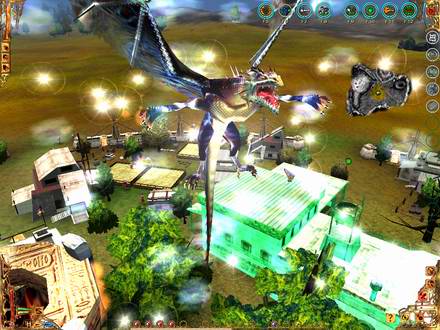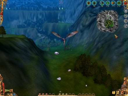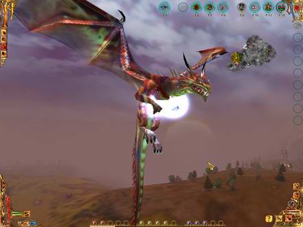 Несколько удивило представление разработчиков Primal Software о драконах, как о существах сугубо воздушных, приспособленных исключительно для полета. Так, несмотря на то, что каждый из наших драконов оснащен четырьмя довольно симпатичными когтистыми лапами, пользоваться ими по прямому назначению (для хождения по земле) зверюшки не могут. То есть, снизиться к земле можно, а вот сложить крылья и сесть или, к примеру, по земле прогуляться не получается. Освобожденные от своей основной естественной функции (поддержки и перемещения драконьего тела в пространстве), лапы используются драконом для ловли вкусных и питательных монстриков, сбора и переноски артефактов, а также активно задействованы в процессе откастовки заклинаний.