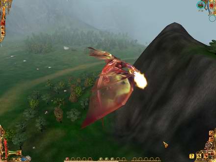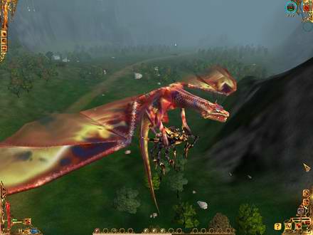Графика в игре, действительно, неплохая – красиво прорисованы ландшафты, города, симпатично реализована смена времени суток и магические эффекты и - что самое главное - хорошо нарисован и анимирован сам дракон. Откровенно радует глаз грамотное отображение некоторых физических аспектов игрового мира. Если пройти на бреющем полете над лесом, деревья будут качаться от взмахов драконьих крыльев; ударяя в землю, огненный шар, выпущенный из пасти дракона, выбивает из нее град разлетающихся в разные стороны крутящихся камней, а, попадая в дерево, разносит его на множество обугленных щепок. Неплохо получились и монстры, которых в игре, по информации Primal Software, более сорока видов (я сейчас как раз пересчитываю, но постоянно сбиваюсь :)
