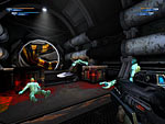 Радует, что разработчики из Legend серьезно отнеслись к такой немаловажной детали, как изображения космоса и космических объектов. Дело в том, что многие текстуры были официально сделаны на основе фотографий NASA. Хотя иногда заметны огрехи: то разработчики оставили абсолютно черным угол (таких теней не бывает), то к тусклой лампочке привинтили страшную текстуру, а то и на звездном небе видны швы. И эту игру делали четыре года! Однако самого большого нарекания достойны зеркальные поверхности, точнее их отсутствие. Отражения в иллюминаторах, зеркальных предметах, стеклянных объектах и компьютерных экранах это всего-навсего прозрачные текстуры не всегда отвечающие тому, что они должны "отображать". Естественно никаких отражений главного героя, рядом стоящих врагов или NPC и прочих двигающихся механизмов они не в состоянии показать. В alfa-версии Domm 3 зеркало в уборной тоже имело некоторые ошибки, но все же было намного ближе к реальности, нежели зеркала U2.