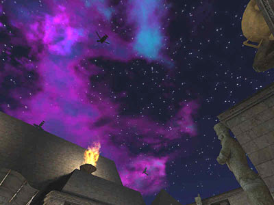 Огромное впечатление на нас произвели следующие визуальные воплощения: удивительная полупрозрачная вода; зеленоватый дым испарений, прибывающий через сантехнические решетки; энергетические блики, бегающие по инженерным строениям; яркие световые разметки труб, венами пронизывающие уровни; натуральная трава, до этого виденная мной только в тесте №4 от 3DMark2001; огромное астрономическое небо египетских карт, с созвездиями и галактическими туманностями. Перечислять можно долго, вы в этом убедитесь сами, пройдя все уровни.