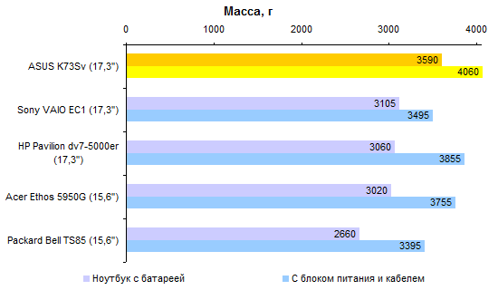 Прилавки отечественных магазинов и демофонды российских представительств ведущих производителей ноутбуков постепенно пополняются моделями на новой платформе Intel. Мы уже успели познакомиться с четырьмя такими ноутбуками: Packard Bell TS85, MSI CX640, Acer Ethos 5950G и HP Pavilion dv7-5000er. На очереди портативный компьютер ASUS. ⇡#Дизайн и эргономикаМеталл идет в массы. Раньше даже мелкие металлические детали были уделом дорогих ноутбуков, теперь же и в дешевых моделях можно обнаружить огромную алюминиевую панель во весь корпус. Например, так обстоит дело в ASUS K73Sv. Похоже, всему виной цены на нефть — разница в стоимости изготовления пластиковых и металлических деталей, по всей видимости, стала совсем невысокой. Правда, крышка все равно пластиковая — и, разумеется, глянцевая. Узор, нанесенный под слоем ламината, не слишком оригинален: серые полоски на черном фоне. Нарядности ноутбуку он не добавляет — разве что помогает хоть как-то скрывать пыль и отпечатки пальцев. По сравнению с предыдущими ноутбуками K-серии эта модель выглядит интереснее. Хотя если сравнивать с более престижной N-серией, сомнений в том, какой из ноутбуков дороже, не возникает ни на секунду. В K73Sv использован стандартный для полноразмерных ноутбуков ASUS клавиатурный блок. Претензий к нему ровно три: недостаточно жесткая подложка, глянцевая окантовка кнопок и не слишком удачная раскладка правой части клавиатуры — со сжатой цифровой панелью и втиснутыми в нее «стрелочками». Даже в MSI уже перестали использовать такую неудачную компоновку клавиатуры, хотя и придерживались ее куда дольше, чем оно того стоило. Довольно любопытно выглядит сенсорная панель ASUS K73Sv. Она представляет собой вогнутую пластину из правильного тефлоноподобного материала. Кнопки расположены не рядом с пластиной, а вписаны в нее. Очевидно, это сделано для того, чтобы визуально увеличить сенсорную панель. В реальности рабочая область не так велика — нижний и боковые края пластины не чувствительны. Разумеется, не обладают чувствительностью и кнопки. Впрочем, панель все равно не назовешь тесной. И она вполне удобна в работе — хотя едва ли найдется много желающих использовать 17-дюймовый ноутбук без нормальной мыши. В ASUS K73Sv почти все коммуникационные разъемы скучены на правой стороне. То есть подключенные к ним устройства и провода будут находиться аккурат там, где у большинства людей лежит рука с мышью. Слева находится только один порт USB. И оптический привод — кстати, в данном случае с поддержкой чтения дисков Blu-ray. Спереди и сзади нет вообще ничего, хотя свободного места здесь предостаточно — корпус крупный и грани скошены под небольшими углами. Набор разъемов почти стандартный — из более-менее выдающихся моментов можно отметить разве что наличие четырех портов USB вместо обычных трех. Однако это достоинство вполне компенсируется тем фактом, что три из четырех портов расположены впритык друг к другу, да еще и в не самом удобном месте. ⇡#Технические характеристики