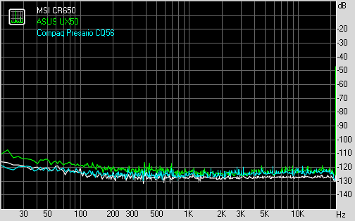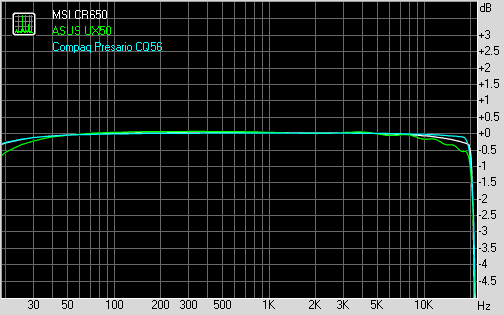 Также после калибровки была измерена зависимость цветовой температуры от уровня яркости при целевом значении 6500 K. Как видно на графике, при уменьшении яркости подсветки цветовая температура стремительно растёт, тем самым искажая реальные цвета.  Зависимость цветовой температуры от уровня яркости подсветки ⇡#Звуковая подсистемаВ ноутбуке установлена пара крохотных динамиков, которые неожиданно выдали весьма неплохое для недорогого ноутбука звучание. Звук довольно глубокий, без шипений и тресков, запас громкости приличный — существенно недостаёт разве что ВЧ-диапазона. В MSI CR650 предусмотрен комплекс обработки звука SRS Sound, предназначенный для улучшения качества звучания. Действительно, при активировании данной функции звучание встроенных динамиков кажется более насыщенным, но при использовании внешней акустической системы или наушников данная система совершенно бесполезна и даже наоборот, только искажает реальную звуковую картину. А подключать наушники, в том числе качественные, можно, ведь на слух интегрированный звук кажется весьма неплохим. Звуковой тракт ноутбука основан на базе хорошо знакомого 4-канального (2+2 канала) HD-аудиокодека Realtek ALC269 с заявленным соотношением сигнал/шум для ЦАП и АЦП, равным 98 дБ. С более подробными характеристиками кодека можно ознакомиться на сайте производителя. Тестирование аудиотракта производилось в пакете RightMark Audio Analyzer (далее RMAA) при помощи звукового интерфейса Creative E-MU 0202 USB. Все спецэффекты отключены, настройки эквалайзера выставлены по умолчанию. Перед началом тестирования драйверы аудиокодека были обновлены до наиболее свежей версии на момент тестирования. Финальная оценка — «отлично». Впрочем, Realtek ALC269 зарабатывает высший бал уже не впервые. В качестве оппонентов были взяты ноутбуки ASUS UX50 и Compaq Presario CQ56. Режим работы: 16-бит, 44 кГц.