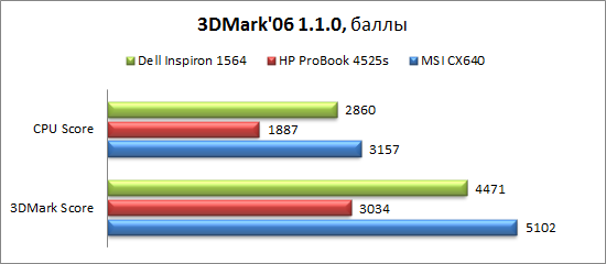 ![]() Сравнительная диаграмма результатов тестирования 3DMark 2006