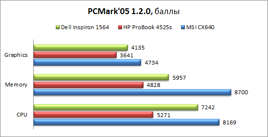 ![]() Сравнительная диаграмма результатов тестирования PCMark 2005