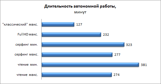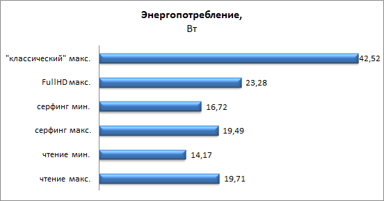 ⇡#Источник питания и автономная работаВ ноутбуке по умолчанию установлен аккумулятор с довольно большой ёмкостью, а именно 90 Вт*ч. Показатель внушительный не только для обычного среднеформатника, но и для мощного DTR. Испытания проводились в пакете Battery Eater Pro в режимах «Классический» с максимальной яркостью подсветки, «Читательский» с минимальной и максимальной яркостью подсветки, при просмотре Full HD-видео с поддержкой аппаратного декодирования и с максимальной яркостью подсветки, а также в режиме интернет-серфинга как с максимальной, так и минимальной яркостью подсветки. Результаты тестирования приведены ниже на сводной диаграмме. ![]() Сводная диаграмма времени автономной работы Также ниже приведена сравнительная диаграмма, демонстрирующая потребление энергии. ![]() Сводная диаграмма энергопотребления ⇡#ЗаключениеНоутбук выполнен в довольно сдержанном стиле, но благодаря цветным крышкам (напомним, доступны модификации с голубой, красной, а также некоторыми другими крышками) смотрится вполне ярко. Глянцевых поверхностей много, но от отпечатков страдает лишь накладка вокруг ЖК-матрицы, да и царапин корпус не особо боится. Отдельно стоит отметить клавиатуру, которая оказалась весьма удобной в работе. Интегрированный звук качественный, но для того чтобы это оценить, необходимо использовать наушники либо внешнюю акустическую систему, потому как встроенные динамики не шибко качественные. Дисплей неожиданно показал не лучшие результаты по равномерности подсветки, а также уровню светимости и контраста, которые оказались хуже характеристик, заявленных производителем матрицы. Из явных недостатков стоит отметить довольно шумную систему охлаждения с весьма странным алгоритмом работы и существенный нагрев корпуса под нагрузкой. Всё же, несмотря на перечисленные недостатки, ноутбук оставил достаточно благоприятное впечатление, ведь при сравнительно невысокой стоимости он оборудован довольно мощным процессором и видеокартой, которая при базовых настройках позволяет запускать многие современные игры. Все это дополняется немалой длительностью автономной работы, в особенности при использовании усиленного аккумулятора. Благодарим компанию «МУК» (г. Киев) за предоставленное для тестирования оборудование. А также компанию «Графитек» (г. Москва) за предоставленный комплект колориметров Spyder3Studio.