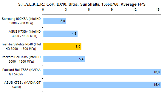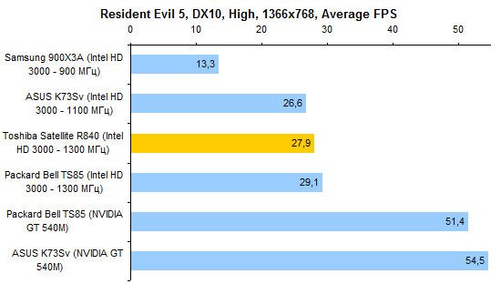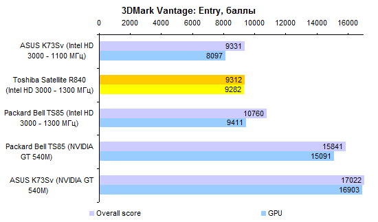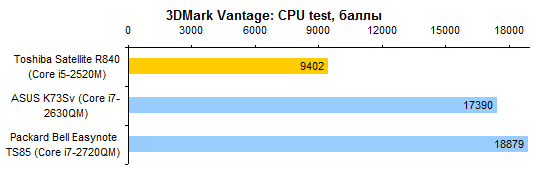 В более свежем 3DMark Vantage картина все же иная: здесь графика Core i5-2520M получает чуть меньшее количество очков, чем встроенный адаптер Core i7-2720QM.