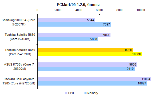 Это наше первое знакомство с процессором Core i5-2520M, так что попробуем сравнить его с как можно большим числом моделей на архитектуре Sandy Bridge. И, конечно же, возьмем для сравнения Toshiba Satellite R630, чтобы посмотреть, насколько новая «начинка» в работе отличается от старой.