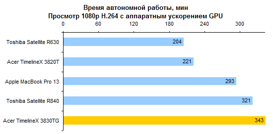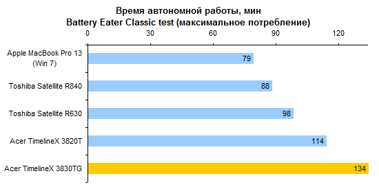 Компания Acer в очередной раз подтвердила, что умеет не только ставить на свою продукцию «вкусные» ценники. По времени автономной работы TimelineX 3830TG — лучший среди протестированных 3DNews ноутбуков.