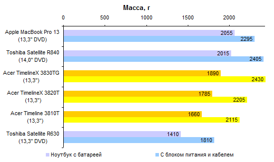 От поколения к поколению Timeline становятся все тяжелее: каждый раз масса увеличивается примерно на 100 грамм с небольшим. Тенденция не очень приятная и постепенно она завела эту линейку в опасную зону «недалеко от двух килограмм». Для ноутбука без оптического привода получается уже многовато — пора брать обратный курс, на уменьшение массы.