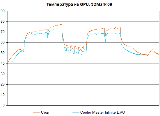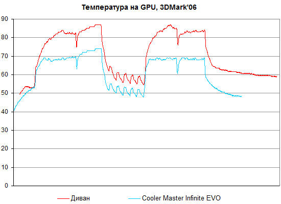 Так или иначе система охлаждения достаточно успешно справляется со своей прямой обязанностью. По сравнению с ситуацией, когда ноутбук стоит просто на столе, температуру графического чипа удалось понизить примерно на 5 градусов. Что не так уж и плохо: для этого небольшого теста был использован ноутбук, собственная система охлаждения которого и так работает достаточно эффективно.