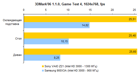 Конечно, это не значит, что над VAIO Z можно всячески измываться и ставить его на любые, даже самые неудачные поверхности. Ноутбук совсем не дешевый и очень мощный, а система охлаждения при неправильном использовании вполне может забиться пылью и потерять изначальную эффективность. Поэтому мы настоятельно рекомендуем по возможности использовать VAIO Z в комплекте с охлаждающей подставкой.