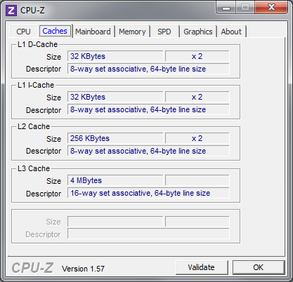 Intel Core i7-2620M: 2,7 ГГц (до 3,4 ГГц в режиме Turbo Boost); 2x256 Кбайт L2; 4 Мбайт L3; два вычислительных ядра |