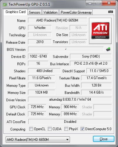 Им Sony предлагает воспользоваться док-станцией, в которой, помимо всего прочего, установлен графический адаптер AMD Radeon HD 6650M. По меркам ноутбуков это достаточно солидное решение – с 480 потоковыми процессорами и тактовой частотой 725 МГц. Разве что память подкачала: в комплекте с довольно-таки мощным чипом Turks в Radeon 6650M работает медленная DDR3.