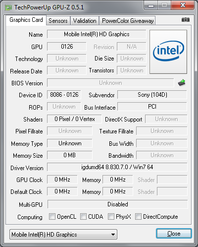 Внешняя графика в данной модели получилась внешней в прямом смысле этого слова. Внутри ноутбука есть только интегрированный адаптер Intel HD 3000. И хотя в VAIO Z использована наиболее производительная его версия, работающая на частоте 1300 МГц, наверняка многим этого покажется мало.