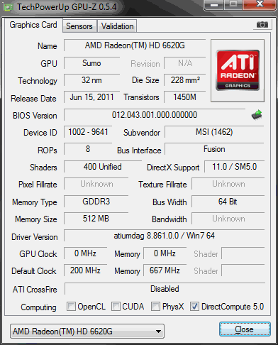 Ускоренные процессоры AMD, известные под именем APU, грозились появиться на свет очень долго. И все энтузиасты, да и просто интересующиеся пользователи ждали их появления с нетерпением. Но время шло, а AMD никак не могла разродиться. Кончилось это тем, что впервые x86-процессоры с интегрированным видео были представлены Intel, так что AMD оказалась в роли догоняющего. Но, пусть и с немалой задержкой, новая платформа все-таки появилась. Вот только поначалу рынок получил лишь процессоры E-серии: с откровенно слабой процессорной частью, хотя и достаточно мощным встроенным графическим ядром. Несмотря на невысокую производительность непосредственно ЦП, многие компании, в том числе и MSI, активно использовали данный процессор в обычных среднеформатниках с диагональю 14-16 дюймов, хотя место этих процессоров — в 11-13-дюймовых ультратонких решениях. И вот наконец пошли в печать процессоры AMD Llano, более уместные в сравнительно крупных ноутбуках. Как ни странно, количество предлагаемых ноутбуков на новой платформе чрезвычайно мало, и даже на рынке США предложений совсем немного. MSI CR670, общий вид К нам попала модель MSI серии CR6xx, которая на момент начала тестирования ещё даже не была анонсирована (выражаем отдельную благодарность украинскому представительству компании за эксклюзивную возможность). По словам представителей компании, данная модель будет носить индекс CR670. ⇡#Внешний видКорпус новинки точно такой же, как и у остальных представителей серии CR/CX600. Более того: ранее MSI часто экспериментировала с рисунками на поверхности корпуса, дабы разные модели были хотя бы немного непохожи друг на друга. Но не в этот раз: корпус MSI CR670 полностью повторяет внешность недавно побывавшего на тестировании MSI CR650, основанного на процессоре AMD E-350. MSI CR670, общий вид Разумеется, и недостатки у корпуса всё те же — темная глянцевая поверхность мгновенно покрывается пылью и отпечатками пальцев. Да и царапину оставить на таком корпусе куда проще, чем на матовом. Хотя, справедливости ради, стоит отметить, что поцарапать тестируемый ноутбук всё же гораздо сложнее, чем большинство глянцевых конкурентов. MSI CR670, общий вид Спереди расположены индикаторы активности. Пояснительные пиктограммы к ним нанесены на рабочей панели, поэтому видны только при открытой крышке. Также спереди находится устройство чтения карт памяти. Из-за особенностей его расположения и конструкции обладателям толстых пальцев будет неудобно устанавливать и извлекать карты памяти — для проведения этой, как правило, несложной процедуры в данном случае приходится немного приподнимать передний край корпуса. MSI CR670, вид спереди Все свободное место на тыльной стороне корпуса полностью занято аккумулятором. MSI CR670, вид сзади Слева находится петля для замка безопасности, разъем питания, вентиляционная решётка, порты HDMI и пара современных USB 3.0, а также два стандартных аудиоразъёма. MSI CR670, вид слева Правый борт чуть менее загружен — привод оптических дисков, один порт USB 2.0, разъём D-Sub (VGA), а также Ethernet-порт. MSI CR670, вид справа Днище ноутбука плоское, разве что в области аккумулятора есть небольшая выпуклость. Вентиляционных отверстий довольно много, хотя компоненты ноутбука в целом не особенно горячие. Корпус опирается на четыре крупные резиновые ножки с небольшим пятном контакта, поэтому ноутбук достаточно легк